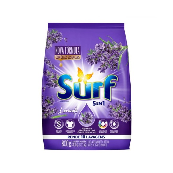 O Sabão em Pó Surf 5 em 1 é um lava roupas em pó com otimo custo beneficio, rende até 10 lavagens, alveja o branco e cuida da cor.